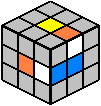 - Durch Drehung der oberen Würfelebene wird der betrachtete Kantenstein über den orangen