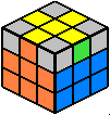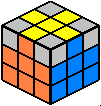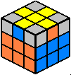1. Fall: Zwei benachbarte Kantensteine sind falsch platziert. Drehen Sie den ganzen Würfel bis die falsch orientierten Kantensteine vorne liegen und führen Sie dann den Zug E aus. |