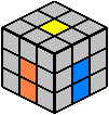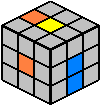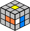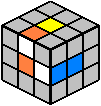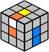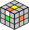 - Durch Drehung der oberen Würfelebene wird der betrachtete Kantenstein über den orangen